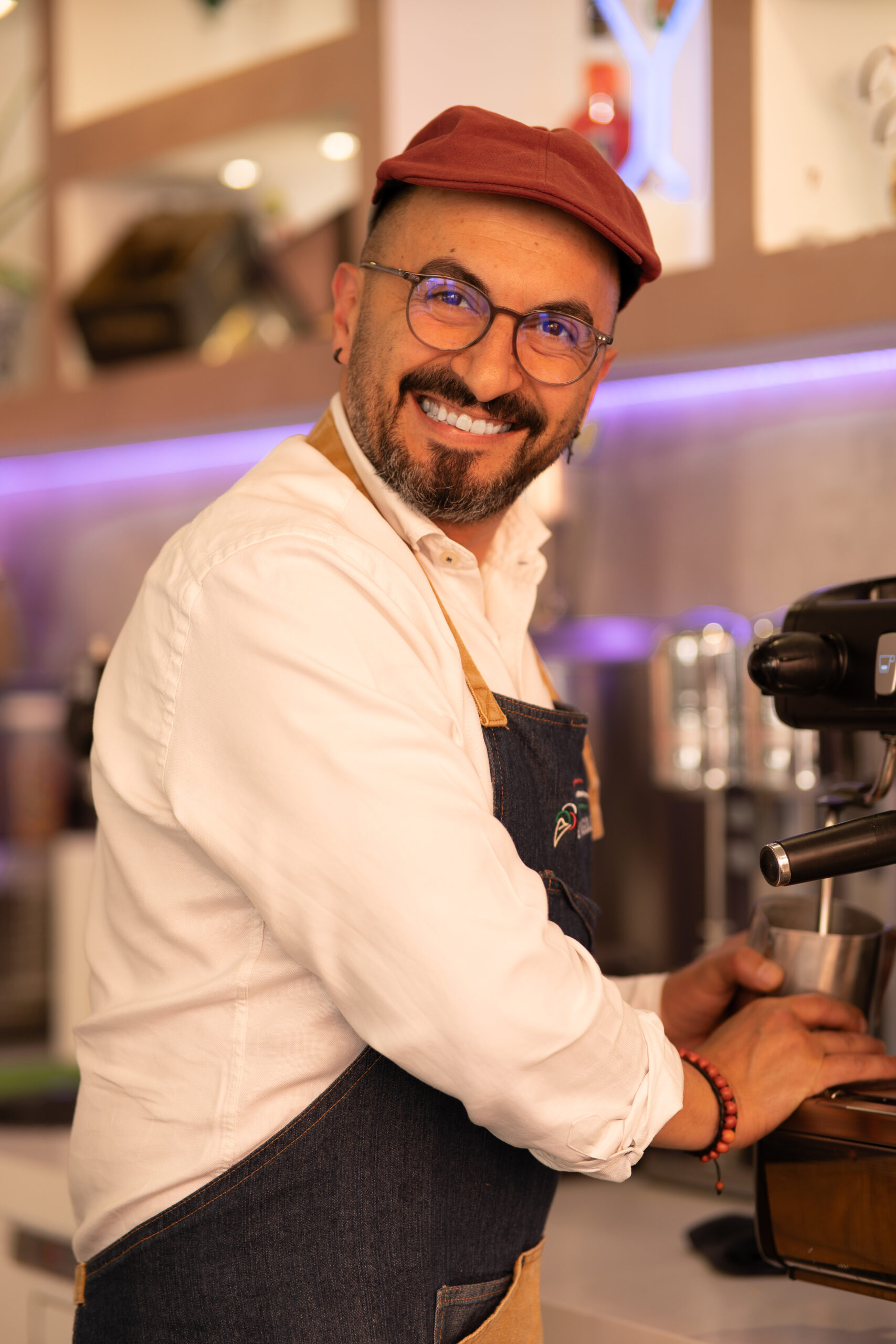 Ihr seht ihn nicht nur im Eislabor, sondern auch hinter der Theke: Mit einem Lächeln, einem cremigen Pistazieneis oder einem Espresso – kräftig, aromatisch und direkt aus Kalabrien.